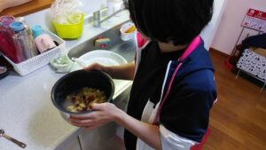 お母様から教えていただいたレシピを見ながらの調理でしたが、とても手際よく調理されていらっしゃいます。