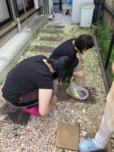 雨上がりの午前中、ホーム3では利用者さんにお手伝いをしていただき草むしりを行いました。