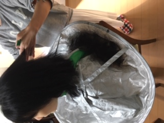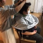 本日、訪問美容を利用され、ホームの利用者様で希望された方がヘアカットを行いました。